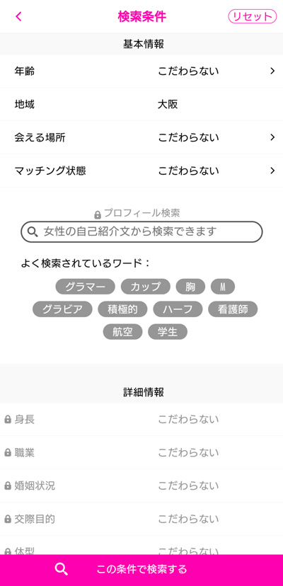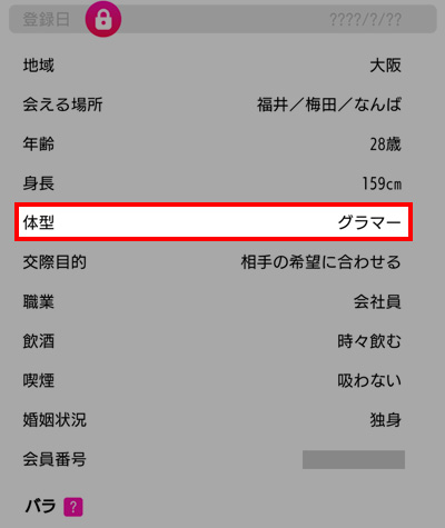 プロフィールでは体型の項目があるのが嬉しいポイント。