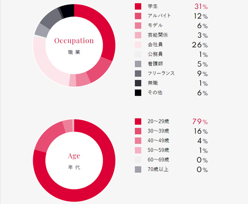 | 女性の年齢層 | 女性:18~40代 |